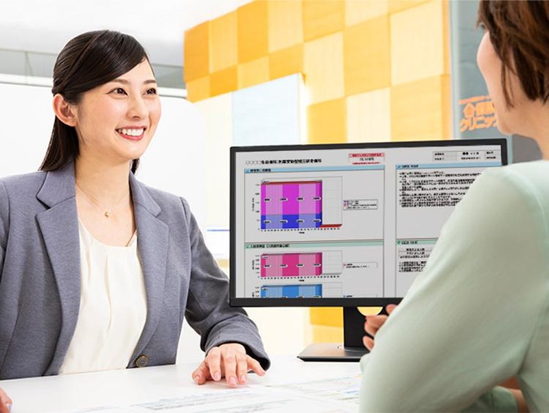 コンサルタントがお客さまのご要望をお伺いし、保険クリニック独自の比較・分析システムを使ってご希望の保険商品をご覧いただきます。